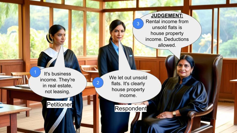 1. M/s. CeeDeeYes IT Parks Pvt. Ltd. constructed and let out property to an IT company, claiming the rental income as business income.
