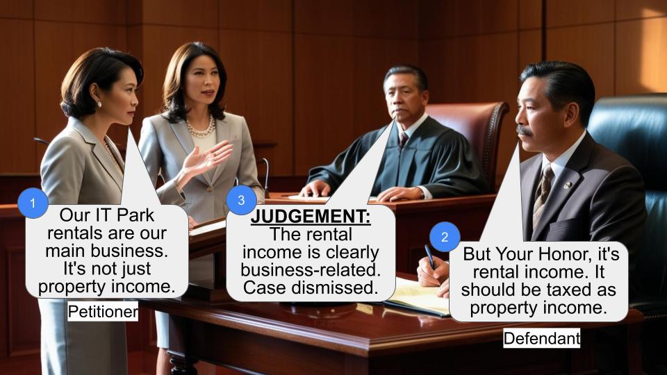 Argued that rental income was their sole business and should be taxed as business income, allowing for deductions like depreciation.