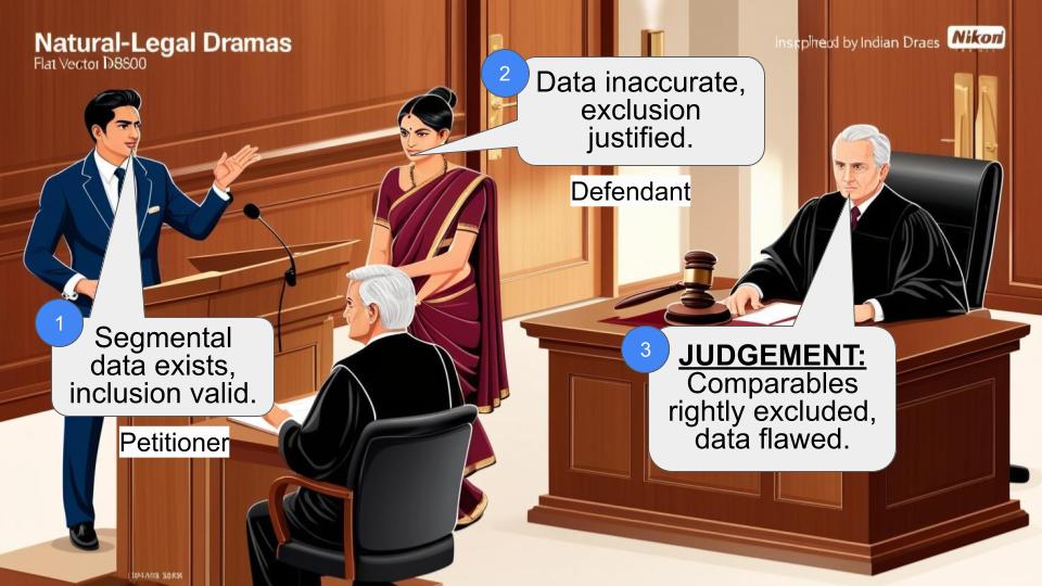 - They argued that segmental data wasn't available for some companies, making comparison difficult.