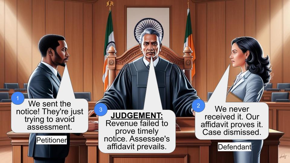 This case involves a dispute between the Revenue (Income Tax Department) and an assessee (H.P. Bhardwaj & Sons HUF) regarding the service of a notice under section 143(2) (of Income Tax Act, 1961). The main contention was whether the notice was served on July 31, 2003. The Income-tax Appellate Tribunal ruled in favor of the assessee, and the High Court upheld this decision, dismissing the Revenue's appeal.